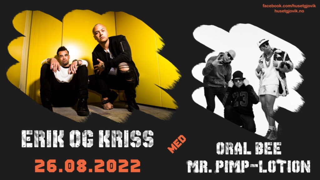Huset is setting the stage, lighting the lamps and putting on a real show for you at the outdoor stage the 26. of August!Erik og Kriss is playing after Oral Bee and Mr. Pimp-Lotion, this is a day you’ll late forget!